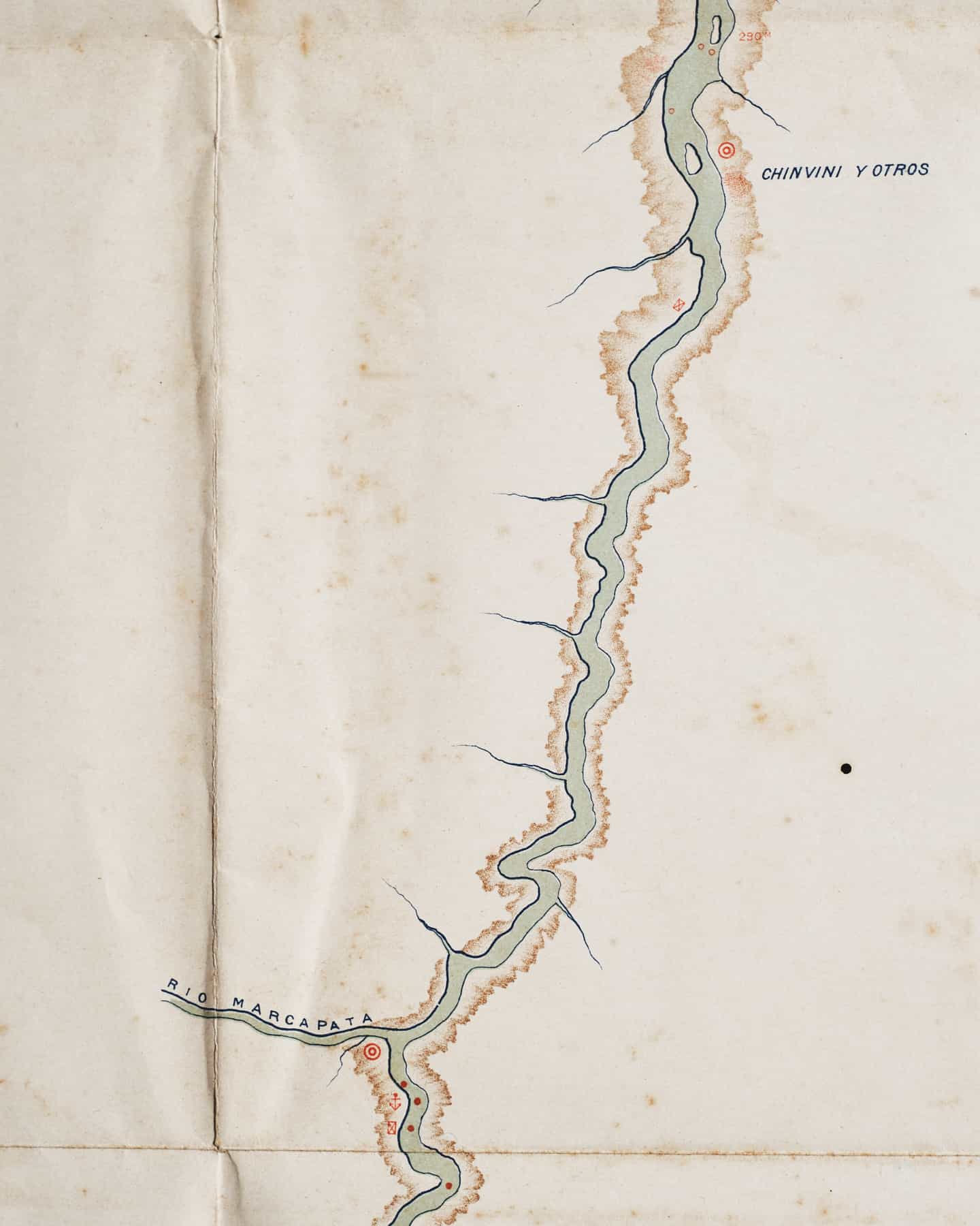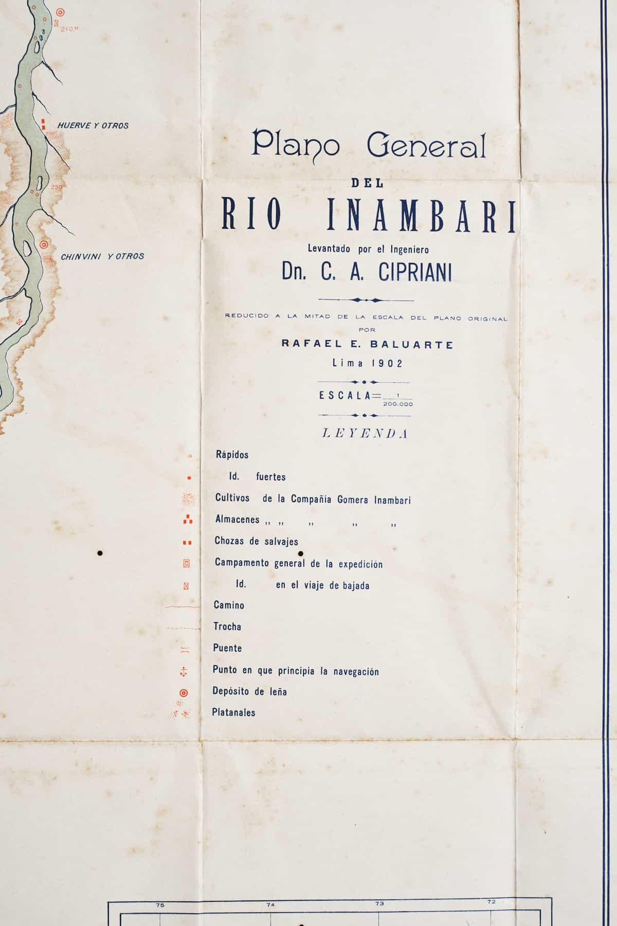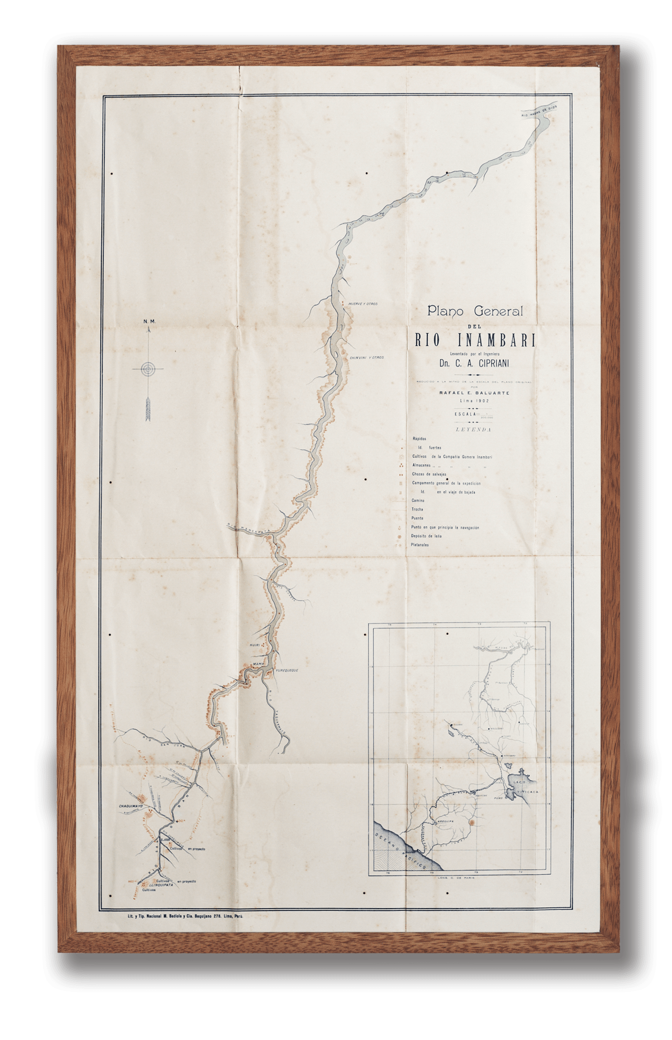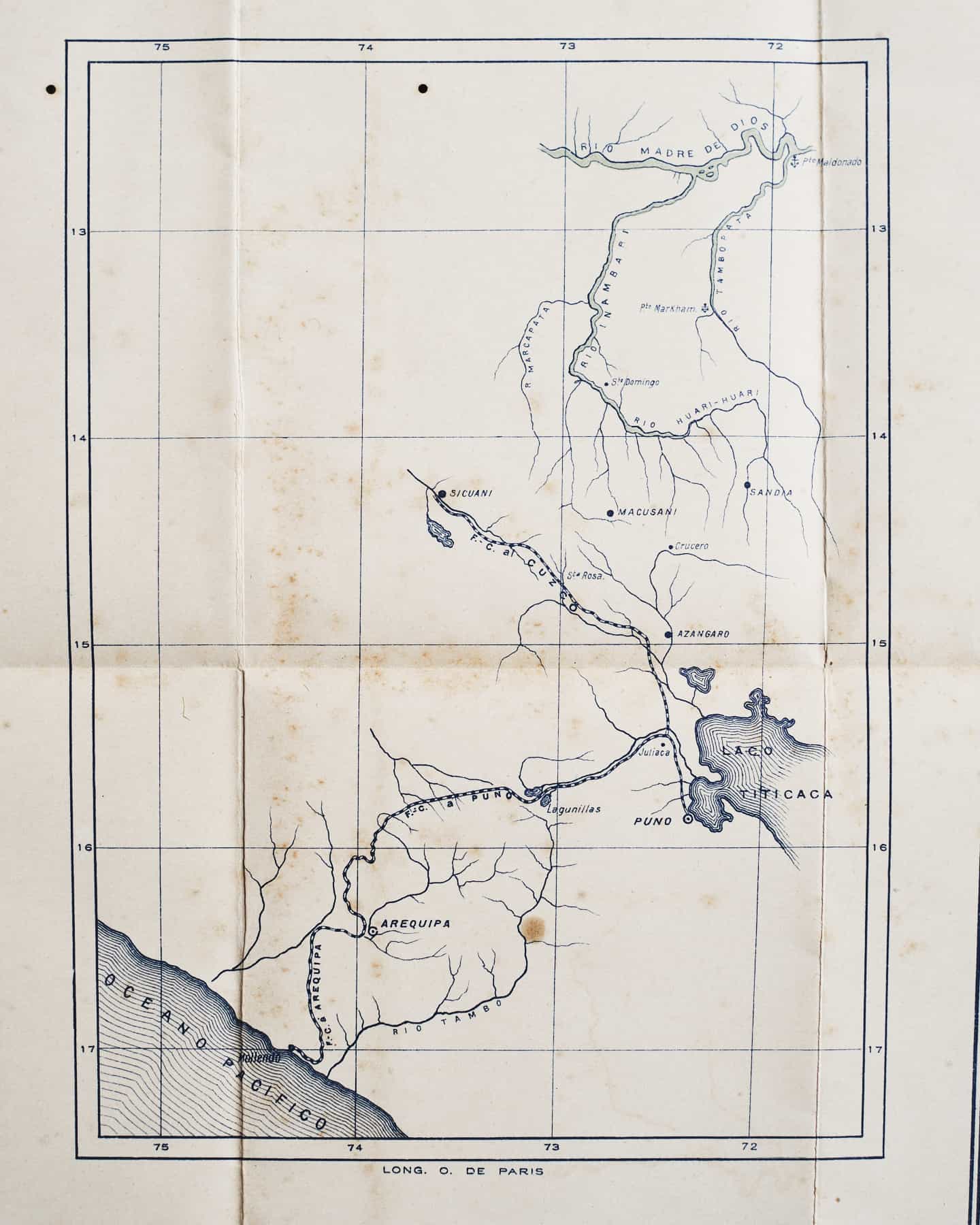 Este plano original que data de 1902 muestra en su diagrama el sendero del río Inambari, afluente del río Madre de Dios, que recorre los departamentos de Puno, Cusco y Madre de Dios.